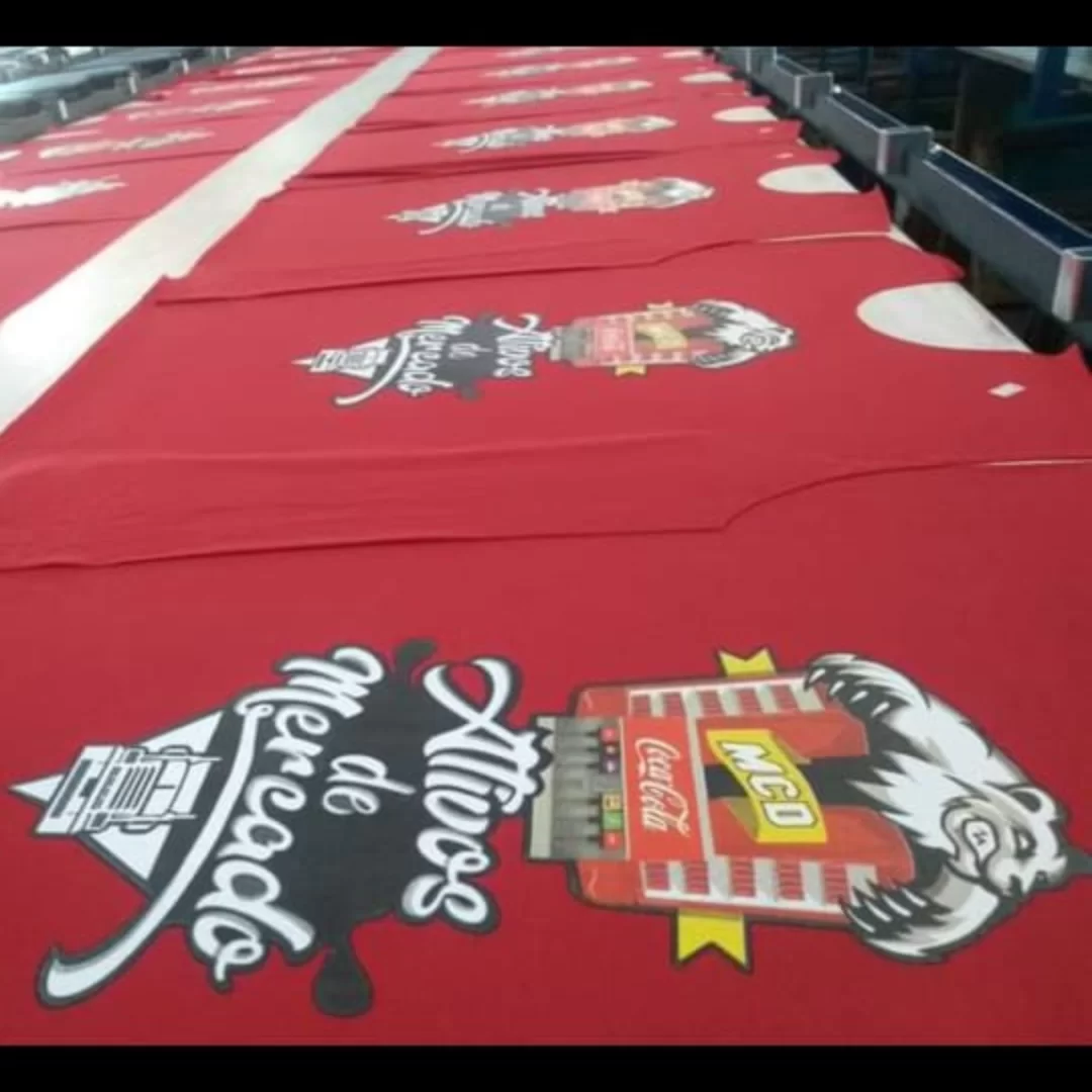 Além da nossa linha de produtos, oferecemos serviços de estamparia personalizados. Se o cliente já possui a peça, nós aplicamos a estampa desejada. Trabalhamos com malha de algodão e malha PV, estampando em diversos tecidos disponíveis no mercado. O grande diferencial é a centralização de todo o processo em um único local, otimizando eficiência e qualidade.