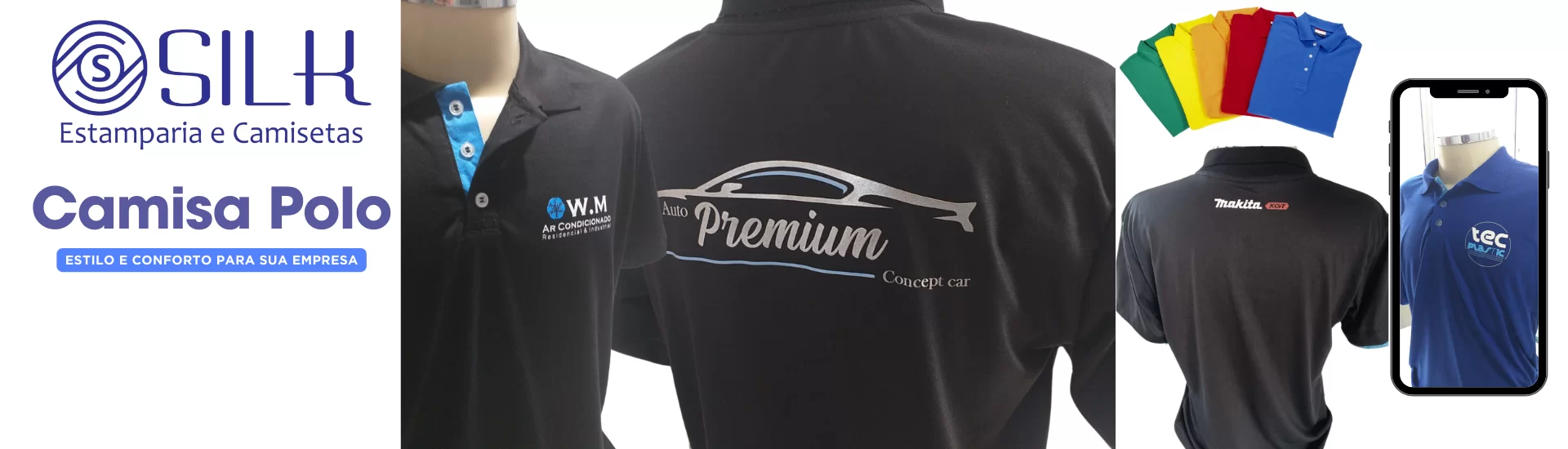 Todas as costuras são reforçadas , com o cobre- golas de ombro a ombro e etiquetas SILKADAS na peça podendo combinar com a estampa ou cores do tecido. Peitinho das pólos com entretela reforçada e aplicada em máquina de alta temperatura.